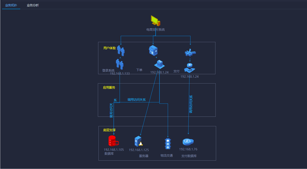 背景:由于業務系統底層支撐的各個設備分離,當業務系統出現故障(健康度、響應時間、存儲容量、數據庫容量、CPU容量、繁忙度、成功率等)時,不易對故障進行定位和診斷。