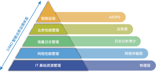 SIMO全棧功能??橐允滌夢謚跡閱?榛?、服務化為設計理念,其主要??榘?個中心、1個門戶——集中監控中心、IT服務管理中心、自動化操作中心、智能化分析中心、運營管控中心,以及服務。